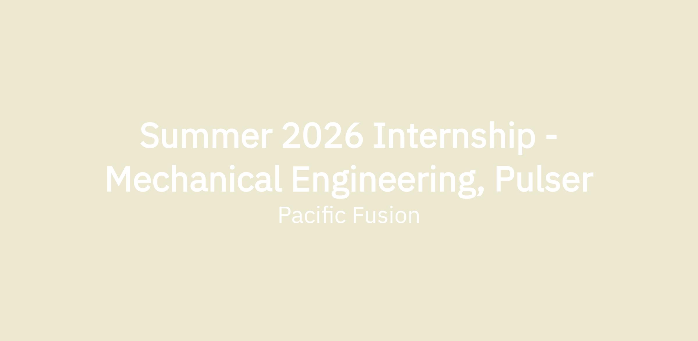 Pacific Fusion is seeking an exceptional Mechanical Engineering Intern - Pulser Engineering to join our dynamic team and create the path to commercial fusion energy. In your role as a mechanical engineering intern, you will get to own a project through the planning, design, assembly, and testing phases of development. Our intention is for our interns to get experience in cradle to grave design as well as hands-on experience building and testing these systems. All of our intern projects are high priority and value-added efforts that directly contribute to the successful development of our fusion system.