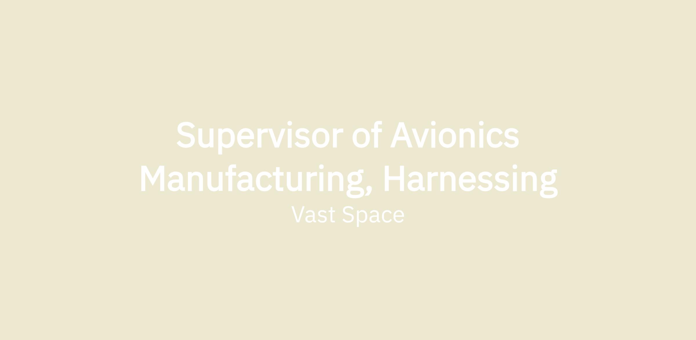 Vast is looking for a Supervisor of Avionics Manufacturing, Harnessing, reporting to Sr. Manager of Avionics and Testing, to support the development of the systems that will be required for the design and build of artificial-gravity human-rated space stations. This will be a second shift role.