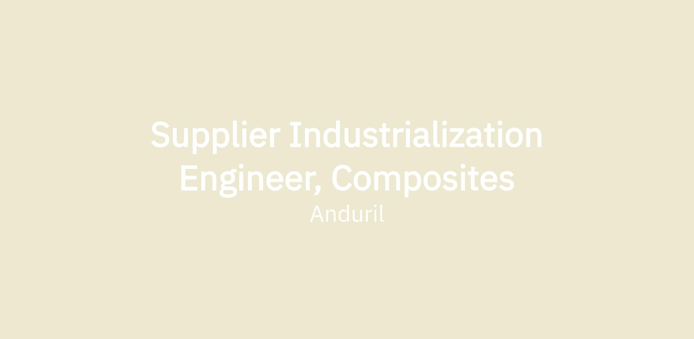 The Staff Supplier Industrialization Engineer, aircraft Composites is a high-profile, cross functional position that plays an integral role in enabling development and production flow of Anduril’s critical supply base. You will work in close coordination with internal engineering, quality, supply chain and manufacturing departments as well as directly with suppliers to execute effective, creative and smart supply chain strategies to achieve production goals.