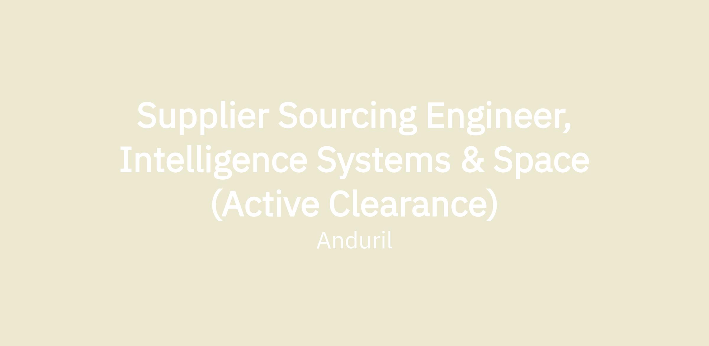 The Supplier Sourcing Engineer (internally known at Anduril as Product Sourcing Engineer), for Intelligence Systems & Space programs, drives the strategic supply network development and cost management of Anduril’s product hardware across their lifecycles, by collaborating with suppliers and cross-functionally, including folks in engineering, quality, and manufacturing. You will be the end to end owner of supply chain for the Anduril Intelligence & Space business line, responsible for engineering support, vendor onboarding & development, as well sourcing, pricing, and negotiating for the total Bill of Material (BOM)