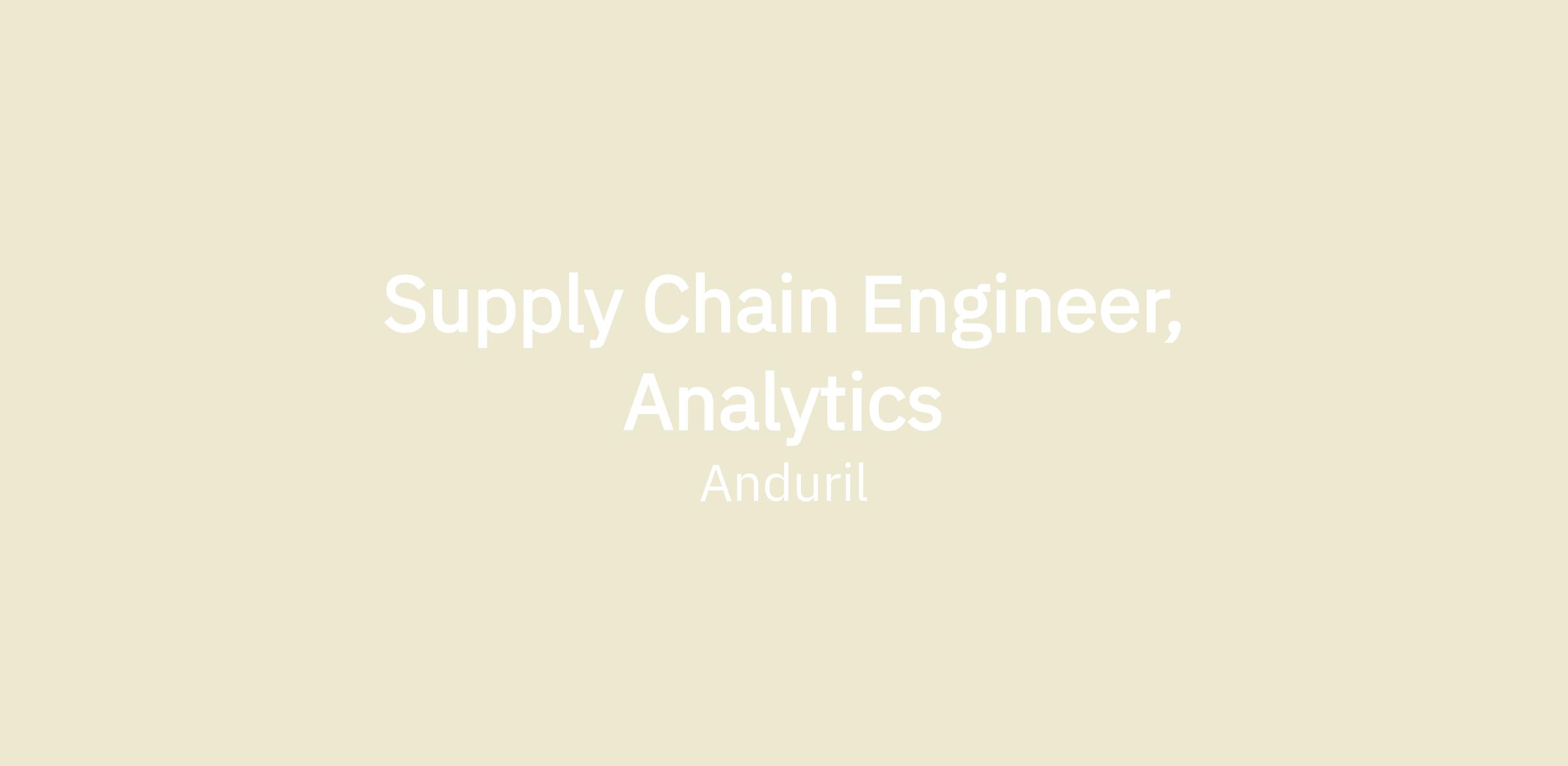 The Supply Chain Analytics team is responsible for deeply understanding our internal supply chain data sources and transforming this data into: ad hoc reporting, dashboards, web applications, and automated workflows. The team partners with all of Anduril's supply chain (Procurement, Strategic Sourcing, Materials Management, etc.) and is tasked with equipping these teams with tools to deepen their visibility and accelerate processes.