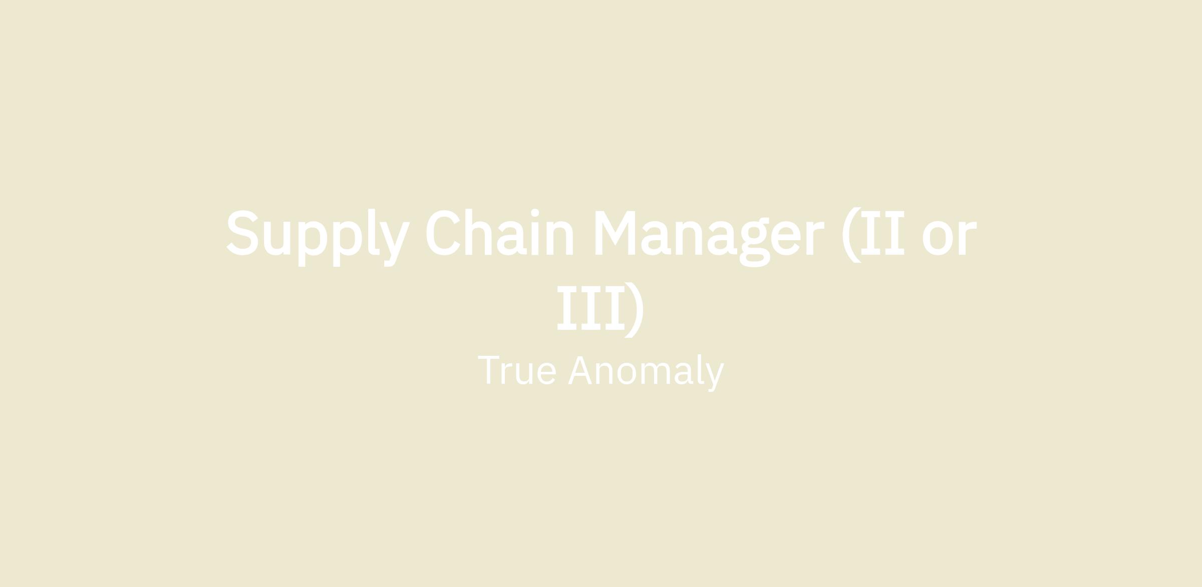 As a Supply Chain Manager at True Anomaly, you will report to the Senior Manager, Supply Chain and be a trusted partner to design, build, scale, and manage the Supply Chain function from the ground up. You will formulate processes, implement systems, and lead a team to execute at scale, enabling the development of our groundbreaking technologies that redefine space security.