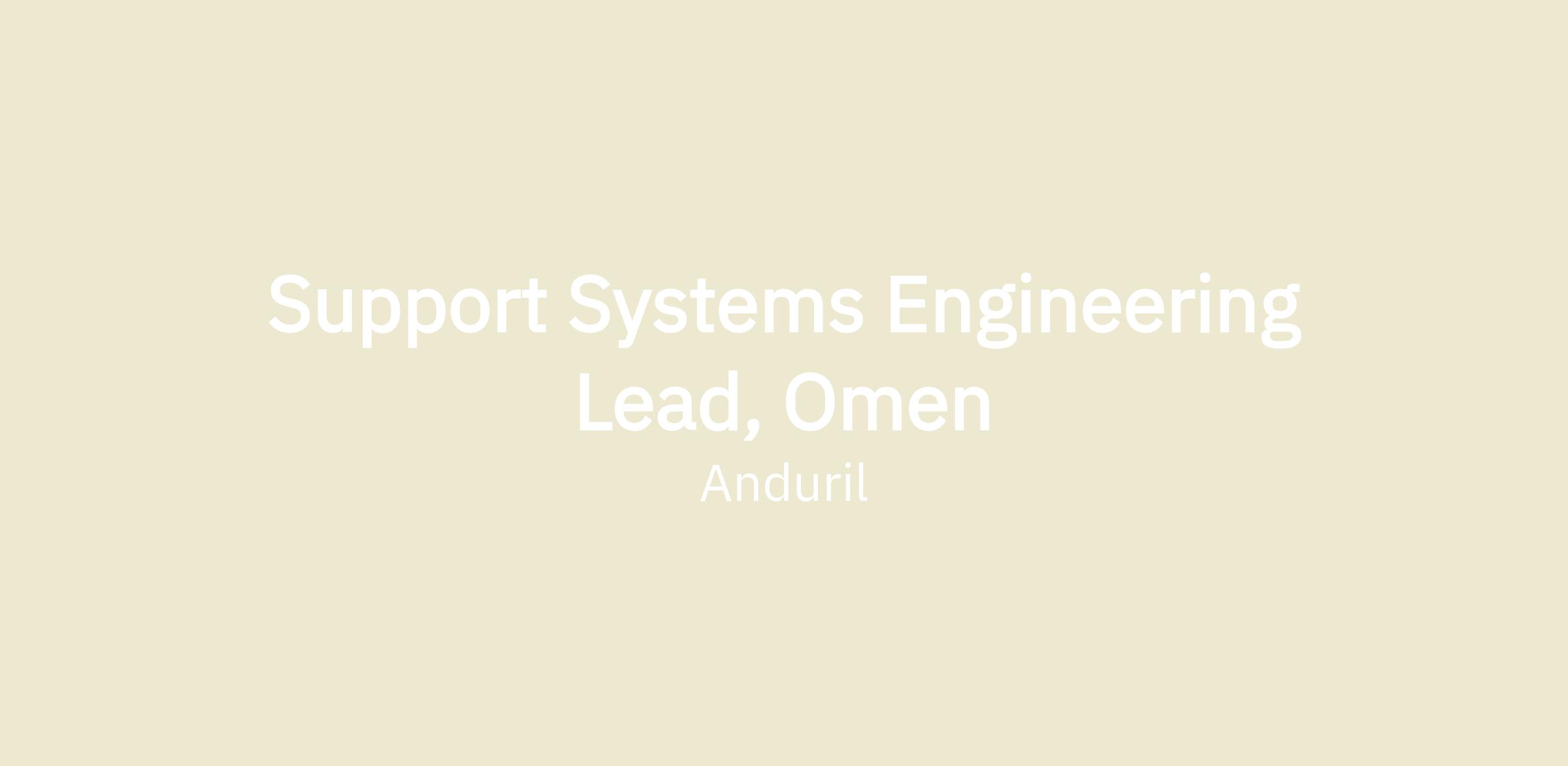 Anduril is seeking a Support Systems Engineering Lead to join the Omen team at our Costa Mesa HQ. Omen is Anduril’s hover-to-cruise autonomous air vehicle (AAV) that packs the endurance, payload, and mission flexibility of much larger airplanes into a novel runway-independent Group 3 platform. Omen can operate from ship decks, beaches, or remote island clearings, providing true runway independence and freedom of maneuver across defense and civilian domains. Omen is the first tail-sitter aircraft with a mass-production contract, with an order of 50 systems representing a decisive investment that anchors production and accelerates the development of future systems.