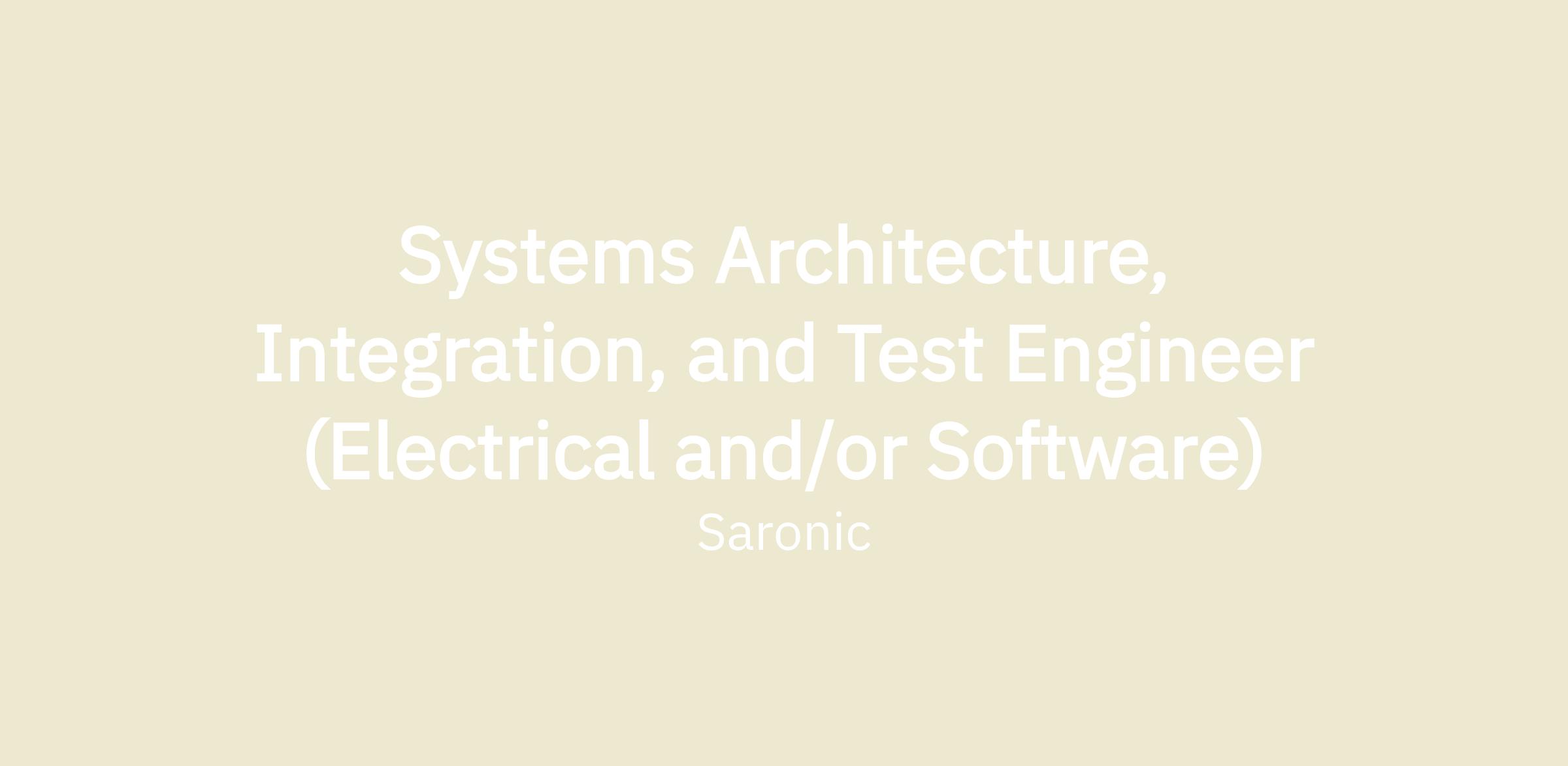 Systems Architecture, Integration, and Test Engineer (Electrical and/or Software)