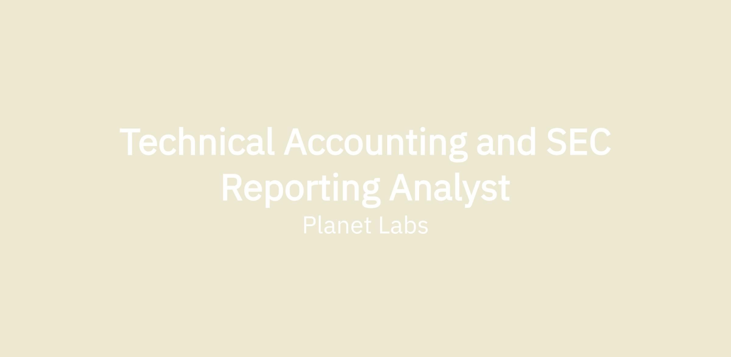 The Accounting team at Planet is seeking an extremely motivated and experienced Technical Accounting and SEC Reporting Analyst as we continue to scale and grow. As a Technical Accounting and SEC Reporting Analyst at Planet, you are someone who is able to roll up your sleeves for hands-on experience supporting the financial reporting process for a company that creates meaningful change. You will play a critical role in developing and implementing accounting policies, enhancing our financial reporting processes, and building a strong technical accounting foundation. This role will work closely with cross-functional teams and external auditors to ensure accuracy, compliance, and transparency in our financial reporting. To be successful in this role, you must have excellent accounting knowledge, pay attention to detail, and embrace challenges as opportunities for success to expand and grow with the company.