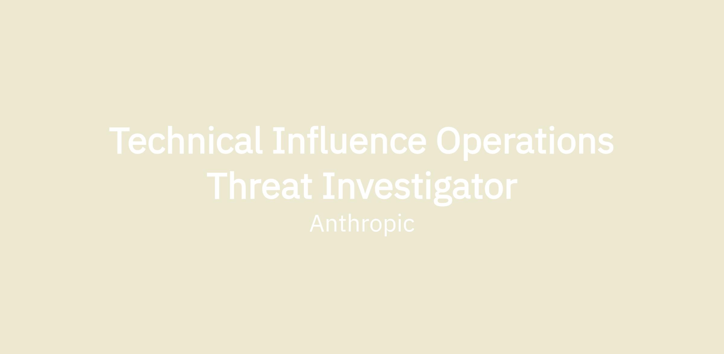 We are looking for a Technical Influence Operations Threat Investigator to join our Threat Intelligence team. In this role, you will be responsible for detecting, investigating, and disrupting the misuse of Anthropic’s AI systems for influence operations, disinformation campaigns, coordinated inauthentic behavior, and other forms of information manipulation.