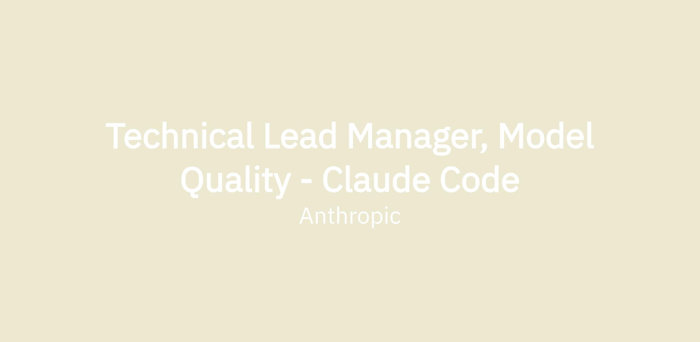 We're looking for a Technical Lead Manager to build and lead the Model Quality engineering team within Claude Code. This team sits at the intersection of engineering and research, building the eval systems, data pipelines, and experimentation infrastructure that tell us where Claude's coding capabilities excel and where they fall short, and then closing those gaps.