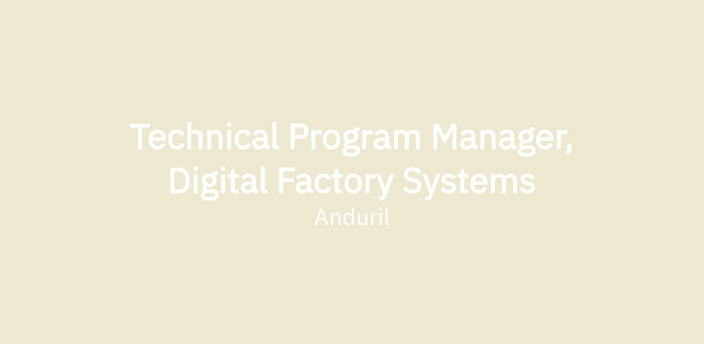 We need a Technical Program Manager to act as the central coordination point for factory software at the site level — someone who can bring together the production system administration, digital IOT, MES, Controls, robotic automation, and manufacturing test teams and their deliverables into a single, coherent execution plan.