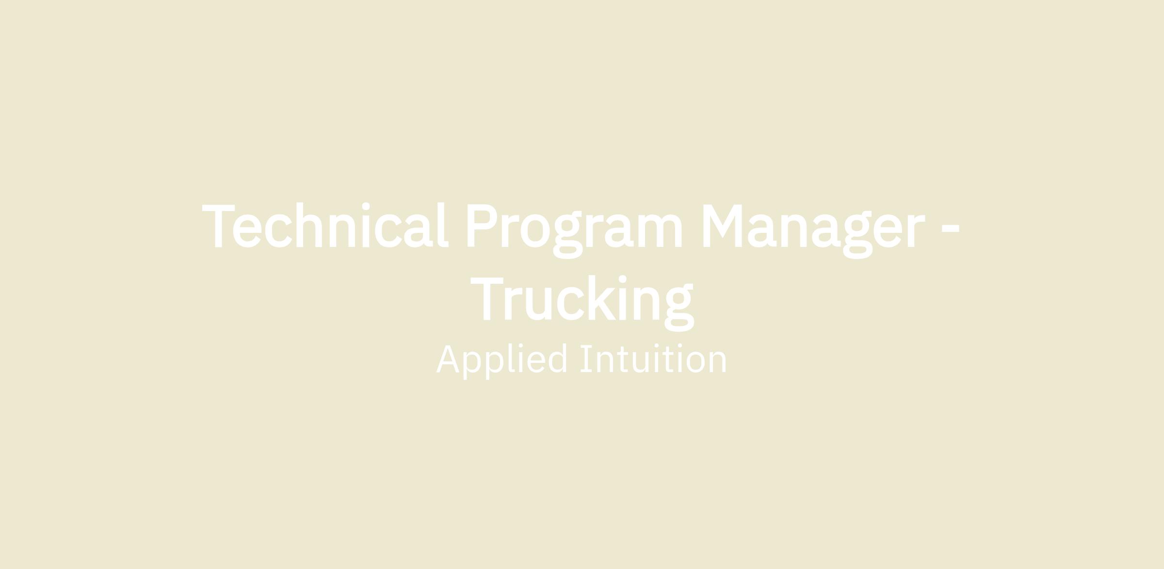 We are looking for a Technical Program Manager to help strategize and manage complex autonomous trucking engineering projects, identify gaps, and implement best practices for our customers. This position will involve intense collaboration with engineers within Applied Intuition and at the customer, in order to implement solutions towards our customers’ autonomy deployment goals.