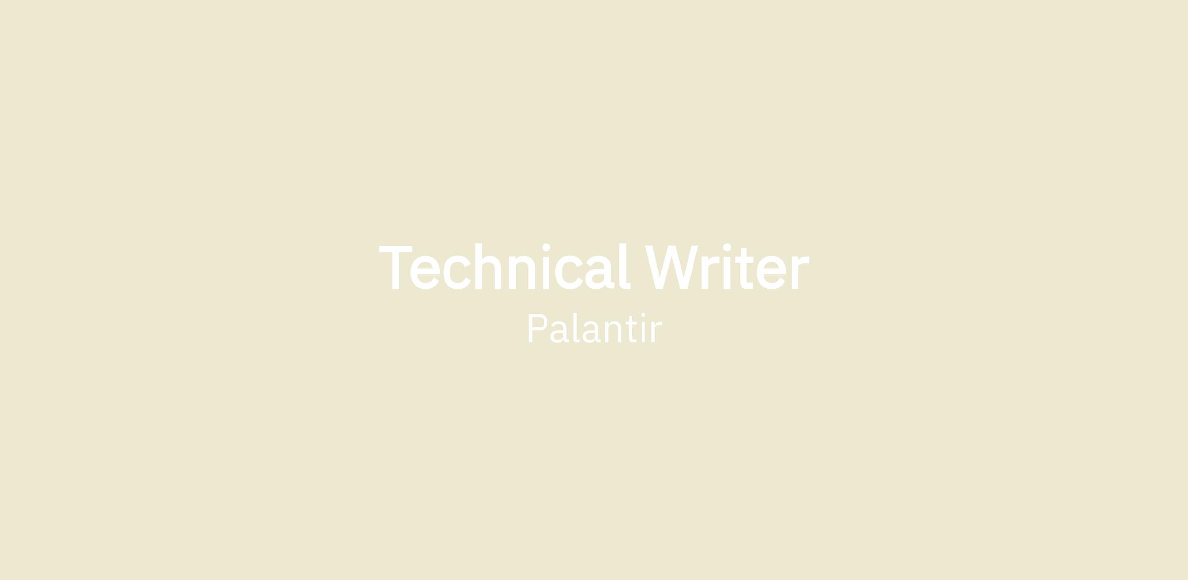 As a technical writer and editor, you’ll play a key role in helping our customers succeed by creating, maintaining, and improving documentation that supports users of Palantir’s products.