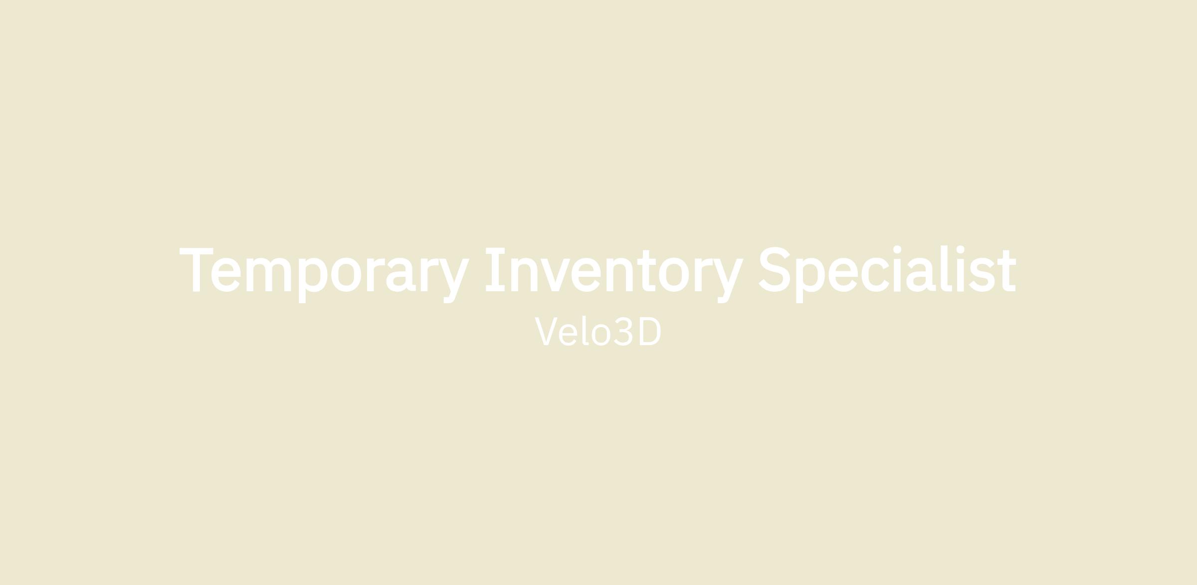 The Temporary Inventory Specialist position requires experience in warehousing operations, strong technical skills (equipment operation, cycle counting of material, space utilization knowledge, handling efficiencies, etc.), in-depth knowledge of inventory management programs as they pertain to Velo3D’s internal operations and goals, a strong understanding of business software (ERP e.g. NetSuite, Product Lifecycle Management, etc.), and strong interpersonal and communication skills.