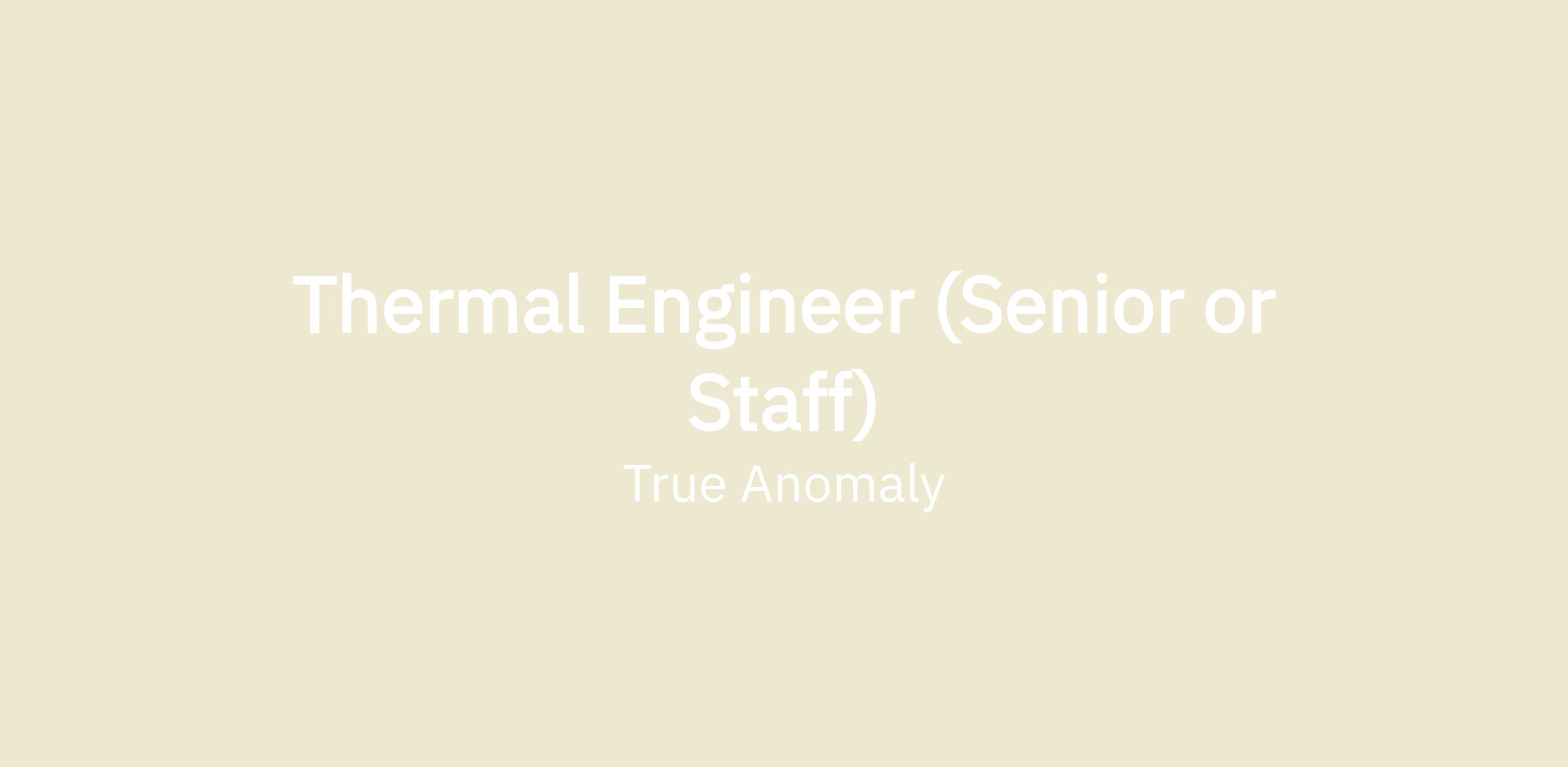 True Anomaly is looking for a creative Thermal Engineer at the Senior or Staff level to develop new spacecraft. In this role you will be work with a multi-disciplinary product team to rapidly develop and produce new space systems.