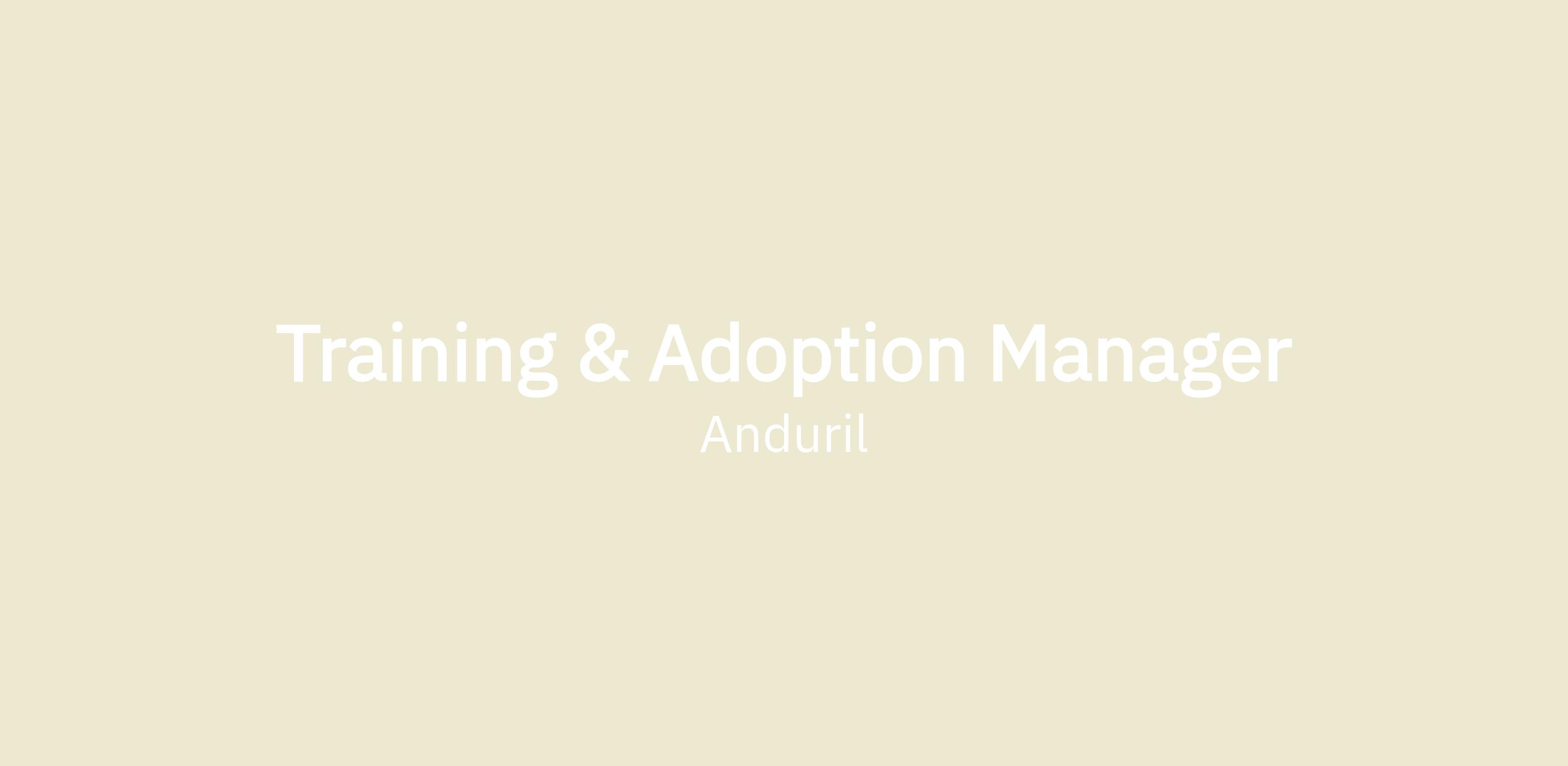 As a Training and Adoption Manager, you will plan, resource, and execute world-class technical training instruction, enabled by a deep understanding of our products and each customer’s unique demands. You will serve as subject matter expert on Anduril’s growing product offerings, including, but not limited to, Counter Intrusion and Counter Unmanned Systems. You will also help drive adoption of our products by understanding user workflows and surfacing pain points. Multi-functional work and proactive communication across internal teams will help you drive the end-to-end customer experience. If you are passionate about teaching ground-breaking technology, contributing to the national security mission, interacting alongside professionals that span a wide-range of disciplines, and providing best-in-class training support, Anduril is interested in speaking with you. We are a fast-growing company at the early stages of our growth and you will be expected to immediately develop and own material and projects that will have a significant impact on the trajectory of the programs you support. Anduril fosters a diverse, collaborative, culture with plenty of opportunities for ownership and professional growth.