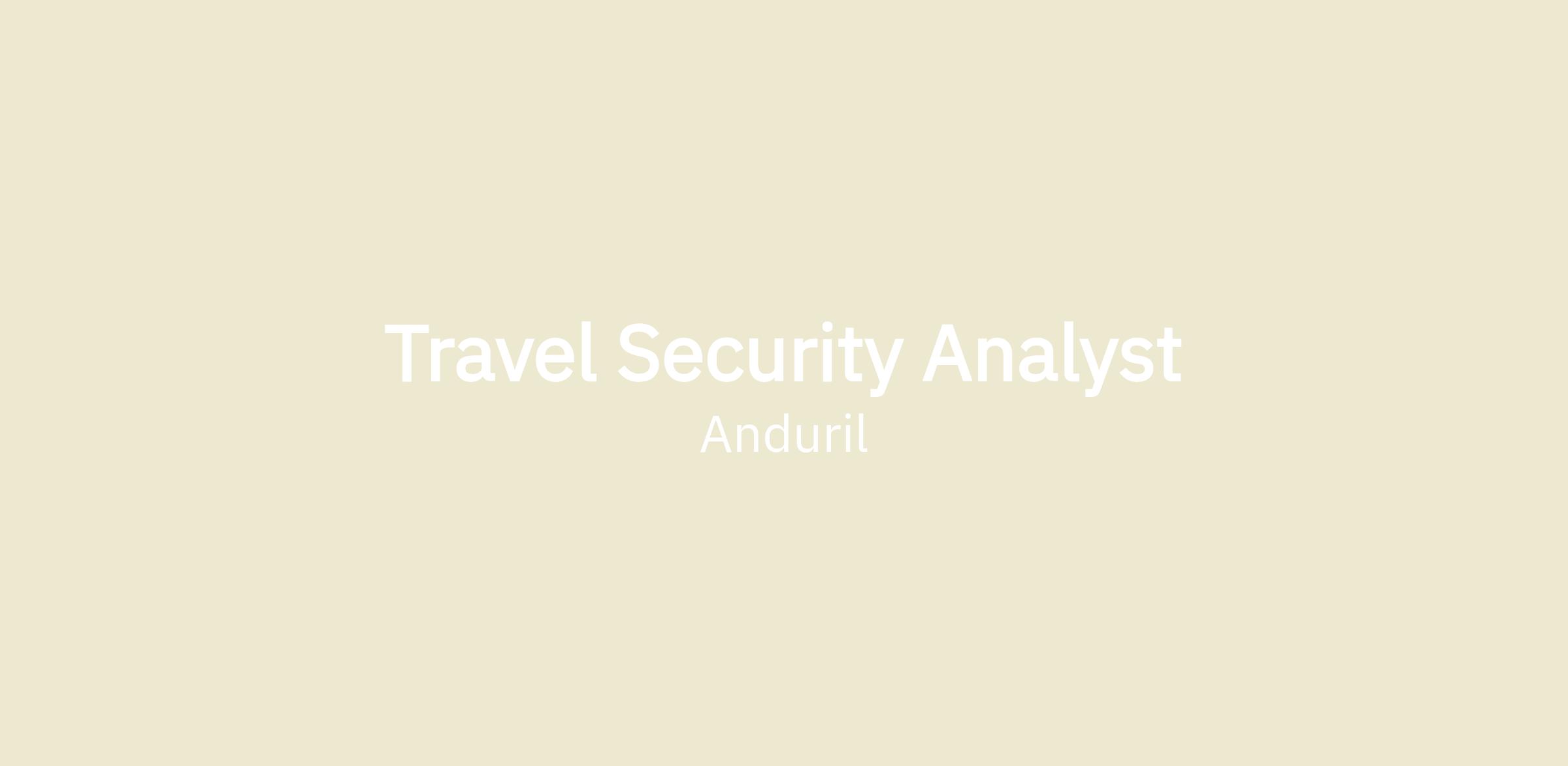 As the Travel Security Analyst, you will support Anduril’s International Travel Security Program. Reporting to the Travel Security Lead, you will help monitor global threats, produce actionable risk assessments and traveler guidance as well as support incidents and escalations in partnership with other internal stakeholders and security assistance providers. This role blends information analysis, risk assessment, mitigation, and operational support to keep employees informed, prepared and safe while traveling globally.