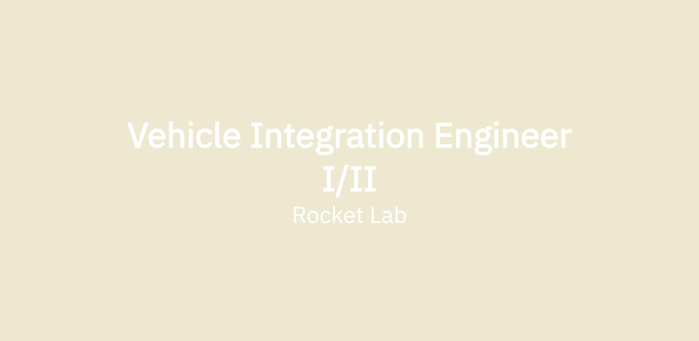 VEHICLE INTEGRATION ENGINEER I / VEHICLE INTEGRATION ENGINEER II