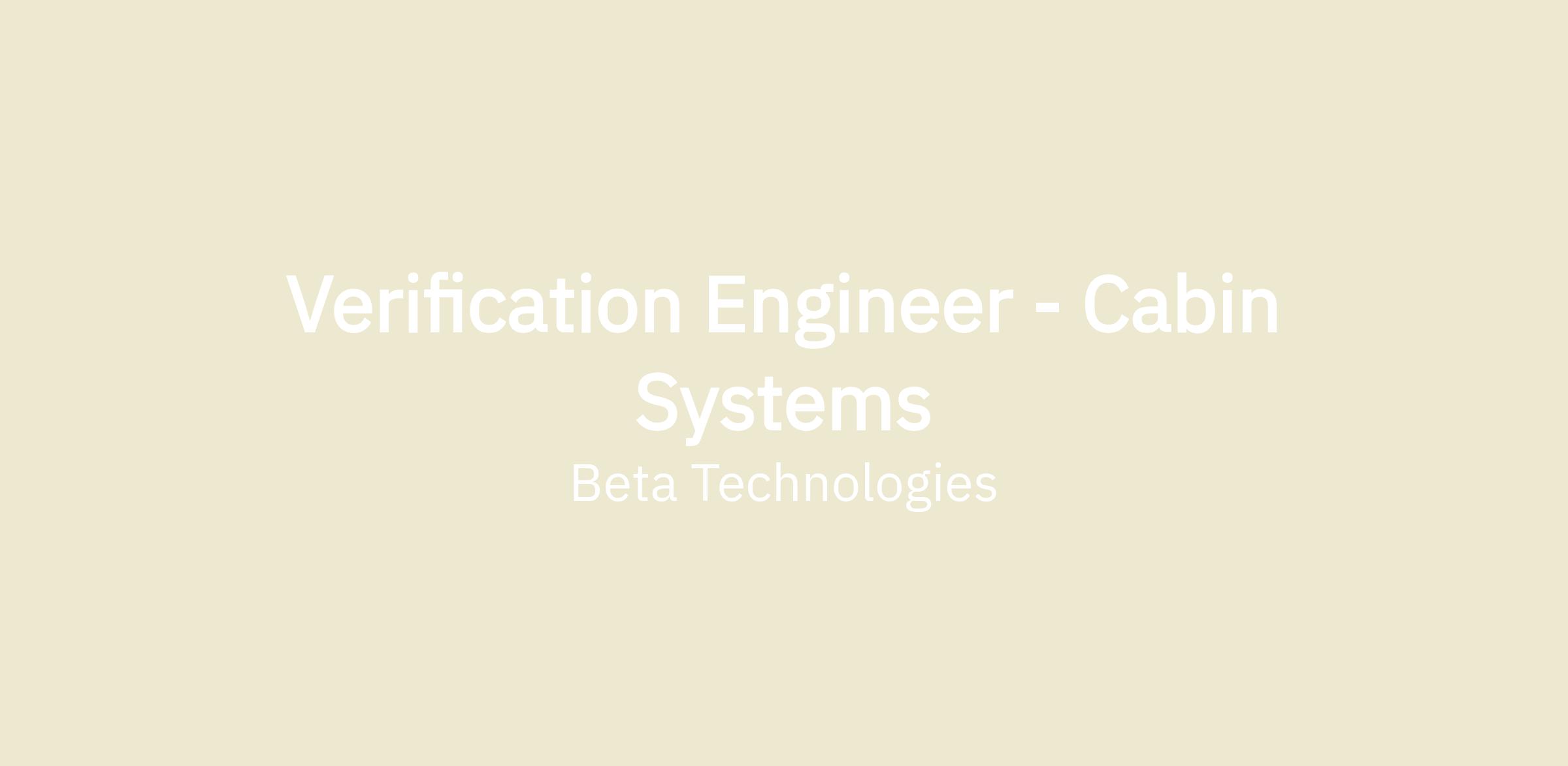BETA Technologies is seeking a Verification Engineer to support the definition, execution, and documentation of verification activities required to certify Interiors, Doors & Transparencies, and Cabin Equipment such as Interior Lighting, Smoke Detector, and Environmental Control Systems.