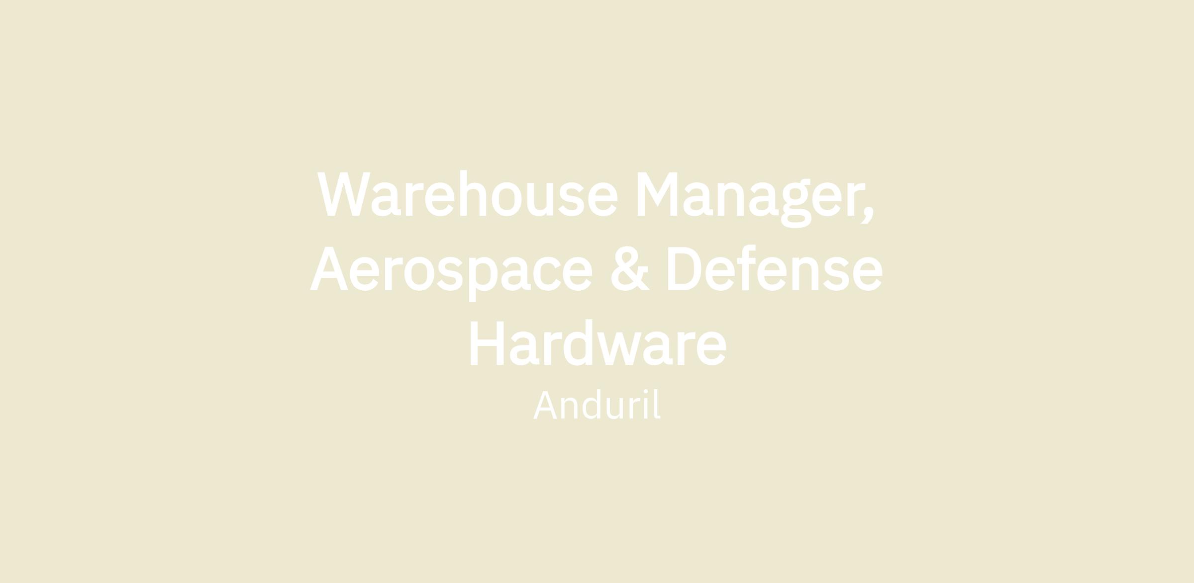 - Hiring & training talent who can manage material flow per Anduril guidelines.