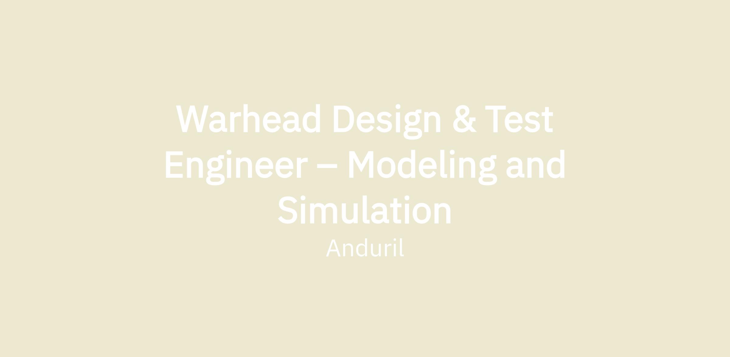 We are looking for Warhead simulation expert in Costa Mesa, Ca. with experience designing advanced explosive ordnances and or advanced munitions systems.