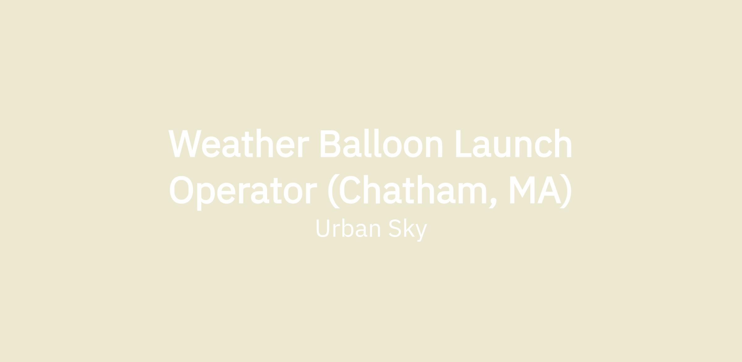 Urban Sky is seeking a Weather Balloon Launch Operator to support our Flight Operations team as part of a pilot program launching high‑altitude weather balloons at site locations in Chatham, MA. The pilot requires two launches per day (morning and evening) over a 199‑day period. You will be responsible for the safe, accurate and timely execution of each launch, including equipment preparation, balloon inflation, adherence to procedures, data collection and communication with the broader operations team. This is a temporary contract role that will require early morning and evening shifts, outdoor work in varied weather conditions, and daily travel to the launch site. You will play a critical role in ensuring the success of our data‑collection campaign—and the data you help collect will directly support atmospheric research and improved climate and weather forecasting. Depending on program outcome there may be potential for longer‑term opportunities within Urban Sky.